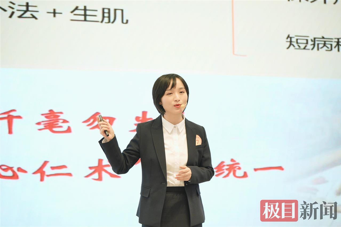 艾萍是武汉市中医医院外科主治医师。开讲时,她撑开一把透明雨伞,利用放射状排列的雨伞骨架来介绍女性乳腺解剖结构,讲述粉刺性乳痈的成因及中医疗法,并将“邪滞乳络”的抽象中医病机与乳腺导管扩张、浆细胞浸润等具体病理改变相结合,深入浅出地阐释了中医内调外治、辨证论治的特色优势,台下的“学生”听得津津有味。